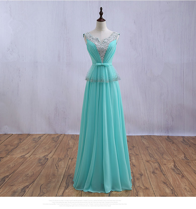 Light Green Chiffon Beaded Crystal Vneck Lace Up Evening Party Gown